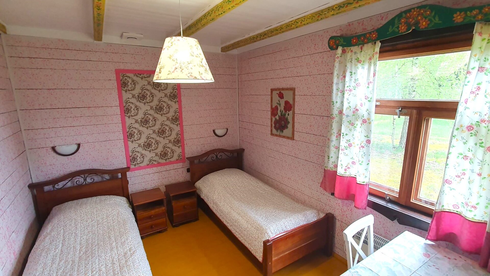 Wszystkie domki są takiej samej wielkości, mają również takie samo wyposażonie. Różnią się kolorystyką wnętrza.